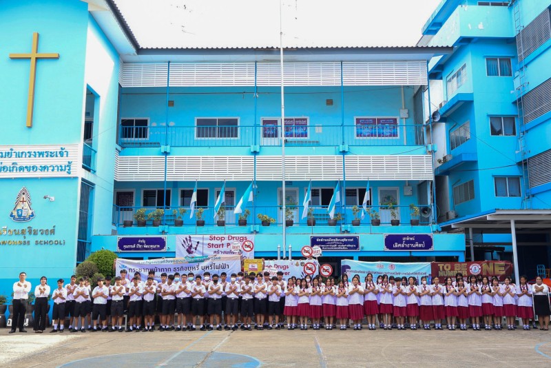 "Stop Drugs, Start Power สร้างพลังไทย หยุดภัยยาเสพติด" วันที่ 26 มิถุนายนของทุกปี เป็นวันต่อต้านยาเสพติดโลก ประเทศไทยได้มุ่งมั่นรณรงค์ต่อต้านยาเสพติดมาอย่างต่อเนื่อง และในปี 2568 นี้ เพื่อแสดงออกถึงความจงรักภักดีต่อชาติ ศาสนา และพระมหากษัตริย์ รวมทั้งเพื่อแสดงเจตนารมณ์และพลังความร่วมมือจากทุกภาคส่วน ภายใต้กรอบแนวคิด"Stop Drugs, Start Power สร้างพลังไทย หยุดภัยยาเสพติด" และนำไปสู่จุดมุ่งหมายเดียวกัน คือ "ปัญหายาเสพติดในประเทศไทยดีขึ้นอย่างต่อเนื่องจนไม่ส่งผลกระทบต่อสังคมไทย" โรงเรียนสุริยวงศ์ ขอประกาศเจตนารมณ์ในการต่อต้านยาเสพติด และขอปฏิญาณว่า "ข้าพเจ้าจะจงรักภักดีต่อชาติ ศาสนา และพระมหากษัตริย์ จะร่วมทำความดี เสียสละ ทุ่มเทกำลังกาย กำลังใจ และสติปัญญาอย่างสุดกำลัง เพื่อประโยชน์ของแผ่นดิน ประพฤติตนเป็นคนดี ไม่ยุ่งเกี่ยวกับยาเสพติดทุกชนิด ไม่ผลิต ไม่ค้า ไม่เสพ หรือให้การสนับสนุน ขอร่วมเป็นพลังในการต่อต้านยาเสพติด เฝ้าระวังยาเสพติดในครอบครัว ชุมชน และสังคม ร่วมแก้ไขปัญหายาเสพติด เพื่อสังคมและประเทศชาติปลอดภัยจากยาเสพติดอย่างยั่งยืน" |